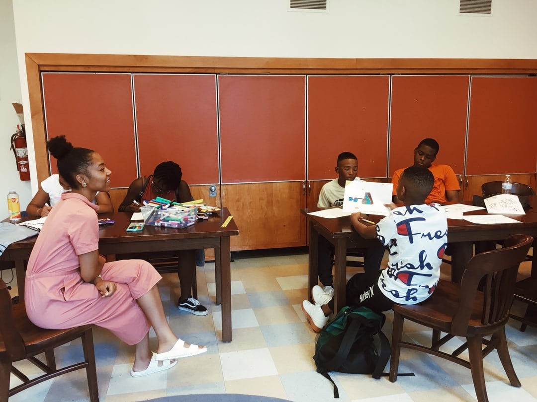 In the Summer of 2019, Afrotectopia launched a free 7-12th grade summer camp to introduce Black youth to an Afrotectopia approach to STEAM. In the camp, students explored sound interactive coding, creating physical sound sculptures, data art and visualizations, stop-frame animation, 3D rendering animation, and speculative design.